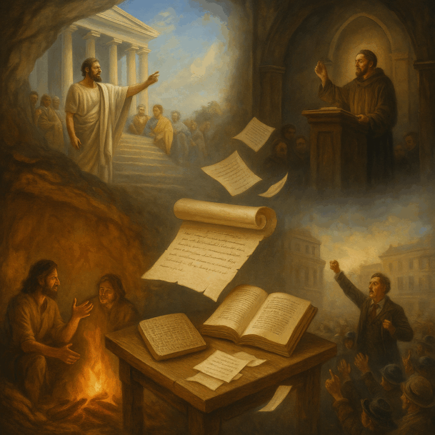 A esto le sacarían partido en la Edad Media las predicciones desde los púlpitos, donde se utilizó la palabra para ensalzar la conversión interior y denunciar la injusticia. Tras ello, se experimentó un regreso a la tradición clásica en el Renacimiento y el Barroco, donde la palabra escrita hace florecer el teatro, la literatura y la búsqueda de la emoción. Llagará la palabra a convertirse en un arma del cambio social en la Ilustración y sus revoluciones, para desembarcar en los siglos XIX y XX donde la mejora y extensión de la comunicación hace que su uso político domine sus demás manifestaciones. En el siglo XXI, los discursos se fragmentan para buscar el impacto inmediato, la oratoria migra a las pantallas y convive con la imagen.